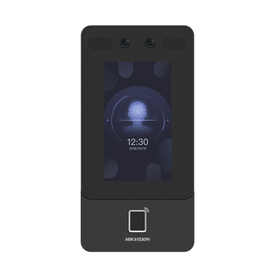 Terminal Min Moe PoE & WiFi de Reconocimiento Facial y Huella con Lector MIFARE / Exterior IP65 / Hasta 1.5 mts en Lectura de Rostro / Soporta P2P / 1,500 Rostros / 3,000 Huellas / Salida 12 Vcd para Chapa / PoE / SIP Estandar / HIK-IA